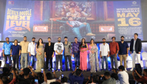 ‘டி டி ரிட்டர்ன்ஸ்’ திரைப்படத்தை இயக்கிய எஸ். பிரேம் ஆனந்த் இயக்கத்தில் உருவாகியுள்ள ‘டெவில்ஸ் டபுள் நெக்ஸ்ட் லெவல்’ படத்தில் சந்தானம், கீதிகா திவாரி, செல்வராகவன், கௌதம் வாசுதேவ் மேனன், நிழல்கள் ரவி, மொட்டை ராஜேந்திரன், மாறன், கஸ்தூரி, ரெடின் கிங்ஸ்லி , யாஷிகா ஆனந்த் உள்ளிட்ட ஏராளமான நட்சத்திரங்கள் நடித்திருக்கிறார்கள். தீபக் குமார் பதே ஒளிப்பதிவு செய்திருக்கும் இந்த திரைப்படத்திற்கு ஆஃப்ரோ இசையமைத்திருக்கிறார். படத்தொகுப்பு பணிகளை பரத் விக்ரமன் மேற்கொள்ள, கலை இயக்கத்தை ஏ.ஆர்.மோகன் கவனித்திருக்கிறார். காமெடி ஹாரர் என்டர்டெய்னராக தயாராகி இருக்கும் இப்படம் வரும் 16ம் தேதியன்று திரையரங்குகளில் வெளியாகிறது. இந்த திரைப்படத்தினை விளம்பரப்படுத்தும் வகையில் நடைபெற்ற வெளியீட்டிற்கு முன் நிகழ்வில் தமிழ் திரையுலகின் முன்னணி நட்சத்திர நடிகரான சிலம்பரசன் சிறப்பு விருந்தினராக கலந்து கொண்டார்.