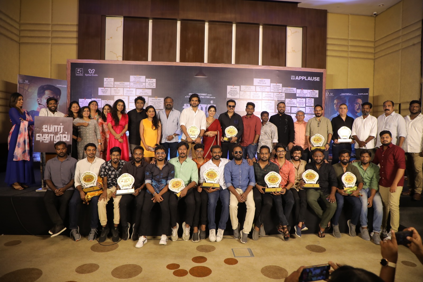 அப்ளாஸ் என்டர்டெய்ன்மென்ட், எப்ரியஸ் ஸ்டுடியோ எல்எல்பி, E4 எக்ஸ்ப்ரிமண்ட்ஸ் எல் எல் பி ஆகிய நிறுவனங்கள் தயாரிப்பில், அறிமுக இயக்குநர் விக்னேஷ் ராஜா இயக்கத்தில், சரத்குமார், அசோக் செல்வன், நிகிலா விமல் நடிப்பில் வெளியான பரபரப்பான சைக்கோ திரில்லர் படம் “போர் தொழில்”. ரசிகர்களிடம் பெரும் வரவேற்பைப் பெற்ற இப்படம் திரையரங்குகளை திருவிழாக்கோலமாக மாற்றியிருக்கிறது. இன்று வரையிலும் ஹவுஸ்ஃபுல் காட்சிகளாகத் திரையரங்குகளை ஆக்கிரமித்திருக்கும் இப்படத்தின் வெற்றி விழா, இன்று சென்னையில் உள்ள முன்னணி நட்சத்திர ஹோட்டலில் நடைபெற்றது. இதில் படக்குழுவினர் கலந்து கொண்டனர்.