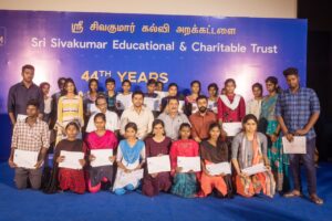திரைக்கலைஞர் சிவகுமார் அவர்கள், தனது கல்வி அறக்கட்டளை மூலம் கடந்த 43 ஆண்டுகளாக, ப்ளஸ்-டூ தேர்வில் நல்ல மதிப்பெண்களை எடுத்த, மாணவர்களைத் தேர்ந்தெடுத்து பரிசளித்து பாராட்டி கௌரவித்து வருகிறார். மாணவர்களை ஊக்கப்படுத்த, தனது 100-வது படத்தின் போது, சிவகுமார் கல்வி அறக்கட்டளையைத் தொடங்கினார். தகுதியான மாணவ, மாணவிகளை அடையாளம் கண்டு, தனது அறக்கட்டளை மூலம் பாராட்டி வருகிறார். ‘சிவகுமார் கல்வி அறக்கட்டளை’யின் 44-ம் ஆண்டு நிகழ்வு, சென்னையில் நடைபெற்றது. விழாவில் 25 மாணவ, மாணவிகளுக்கு தலா ரூ.10,000/- வீதம் மொத்தம் ரூ. 2,50,000/- (இரண்டு லட்சம் ஐம்பதாயிரம் மட்டும்) பரிசளிக்கப்பட்டது. இத்துடன் திண்டிவனம் கல்வி மேம்பாட்டு குழு நடத்தும், ஏழைமாணவர்களுக்கான, ‘தாய்தமிழ் பள்ளிக்கு’ நிதி உதவியும், மூத்த ஓவிய கலைஞர் ஜெயராஜ் அவர்களுக்கு ரூபாய் ஒரு லட்சமும் வழங்கப்பட்டது. செங்கல்பட்டு மாவட்டம் சோமாண்டர்குடி அரசு உயர்நிலைப் பள்ளி ஆசிரியர் திரு.ஞானபிரகாசம் அவர்களின் அர்ப்பணிப்பு மிக்க பணிகளுக்காகவும், ‘குறள் வழி கல்வி’ என திருக்குறளின் மேன்மையை பள்ளி எங்கும், மாணவர்களின் மனதில் விதைக்கும் பணிகளை முன்னெடுத்து வரும் திருச்சி சிறுகாம்பூர் அரசு மேல்நிலைப் பள்ளிக்கு பாராட்டும் பரிசும் வழங்கப்பட்டது.