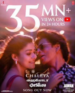 Love conquers all! SRK in romance wins hearts across! The song from Jawan titled “Hayyoda” in Tamil, “Chaleya” in Hindi and “Chalona” in Telugu garners 35 million views on YouTube across Hindi Tamil and Telugu
