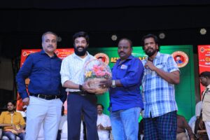 “I am so much privileged to have such wonderful fans, and would never get tired of thanking them. I owe them a lot. I thank them for showering their love irrespective of my presence and absence in the industry. Many people ask me why I don’t act regularly. People who know me know that I act only if I like the story. I agreed to this film only after Vijay Sri G reworked the story for 7 times. I am awe-stricken by the support and love extended by Coimbatore people. Everyone in the team worked so hard. Vijay Sri G has made this film in such a way that it will appeal to the interests of 2K kids as well. Music director Rashaanth Arwin is the showstopper today. He has delivered tremendous songs for this film, and the one based on father-daughter bonding will be liked by all. This film has proved that a good cinema with unique content will be received very well in trade circles. It has happened with this project. Kovai Brothers, after watching the film, have appreciated the movie. The film is getting ready for release on June 7 by Kovai Brothers. This will be a treat for everyone. Thank you all.”