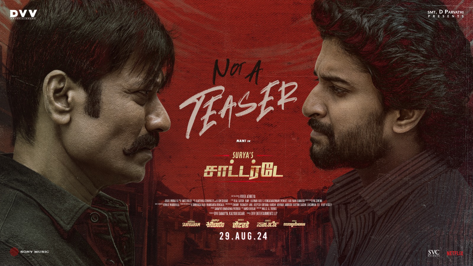 Vivek Athreya is a genius who has his own style in narrating stories. Likewise, the narrative style is impressive in Not A Teaser video. Murali G’s cinematography is outstanding as the visuals are spectacular, whereas Jakes Bejoy complements the visuals with his intense score. The production values of DVV Entertainment are top-notch.